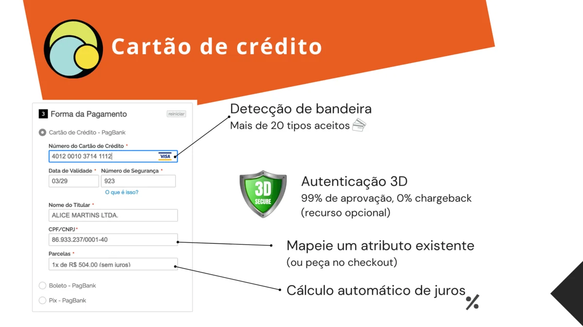- Autenticação 3D Secure para evitar chargebacks e aumentar aprovação