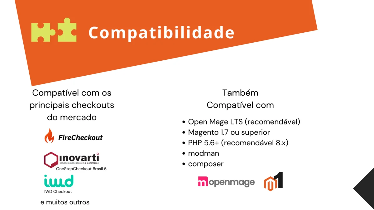 - Compatível com os principais checkouts do mercado (OneStepCheckout Inovarti, IWD, FireCheckout, etc)