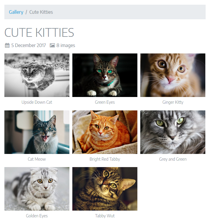 A GalleryImage consists of a title, image and caption. Gallery and GalleryAlbum pages
