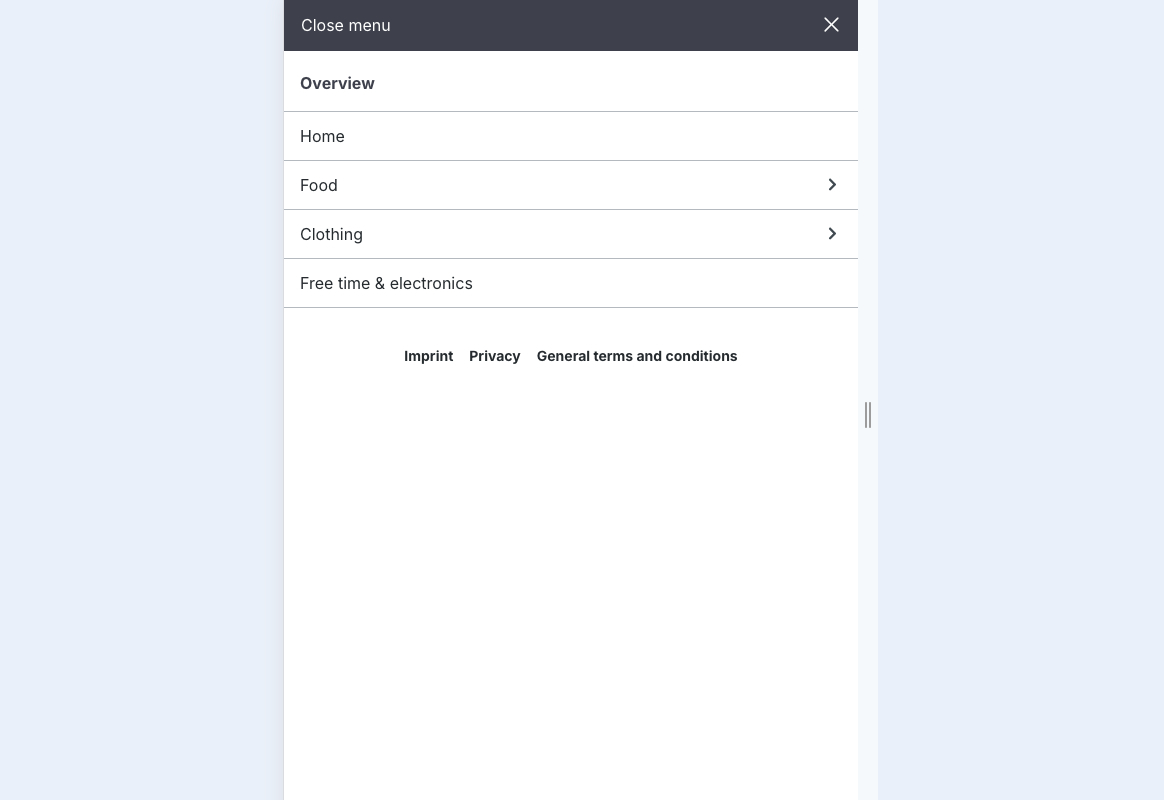If necessary, the menu can be displayed in the smartphone view in full width and the font size of the close button can be adjusted.