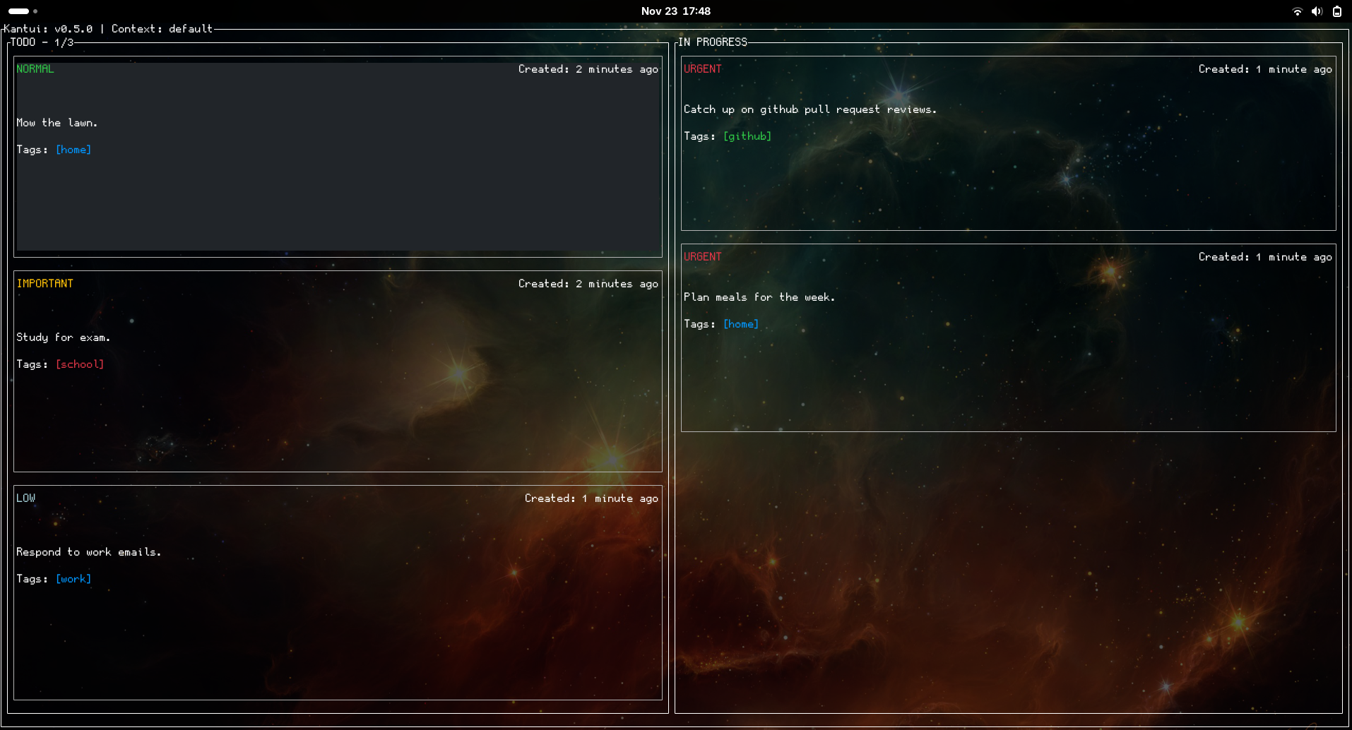 # specify context or "board" to use. This lets you manage multiple boards. export KANTUI_CONTEXT="my-context" kantui