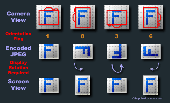 Automatically rotate JPEG image on upload, according to Exif Orientation data for consistent, upright viewing on a web page.