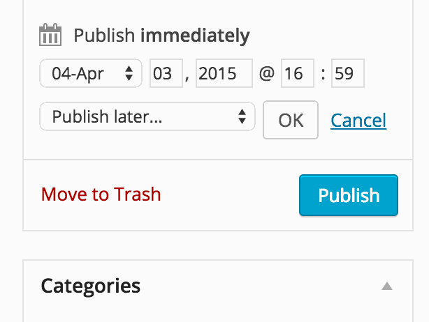A simple WordPress plugin that lets you choose if you want to schedule a post in 1 hour, Tomorrow 8 am, Tomorrow after lunch, Tonight, Next monday or Next month.