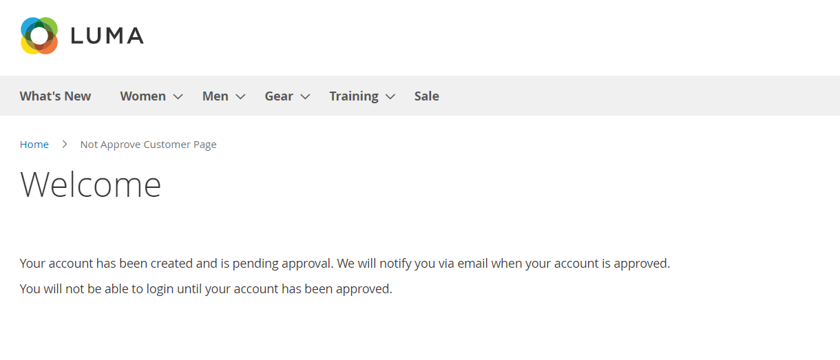 In another way, customers whose accounts have not approved yet can be redirected to a specific page configured by the store admin. This is the page which is allowed to freely access without accounts or a simple notice page.