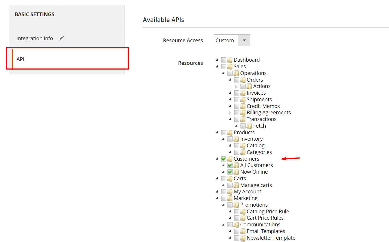 Note: For the API tab you should select Customers and Mageplaza Customer Approval.