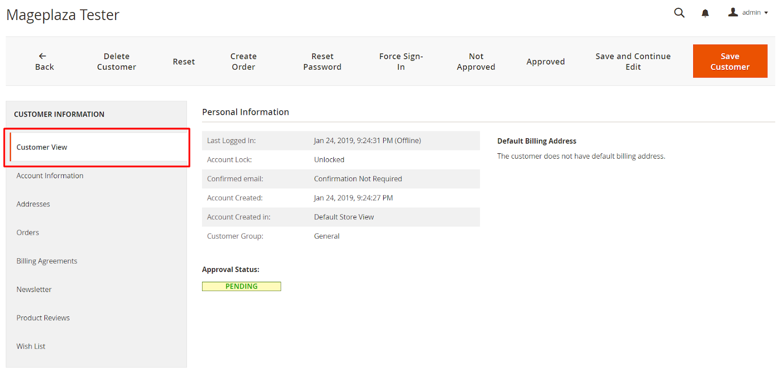 In case the approval is automatic, customers will be approved immediately when finishing account registration and can log in easily. By contrast, if store owners would like to control carefully visitors, the approval can be managed manually from store backend.