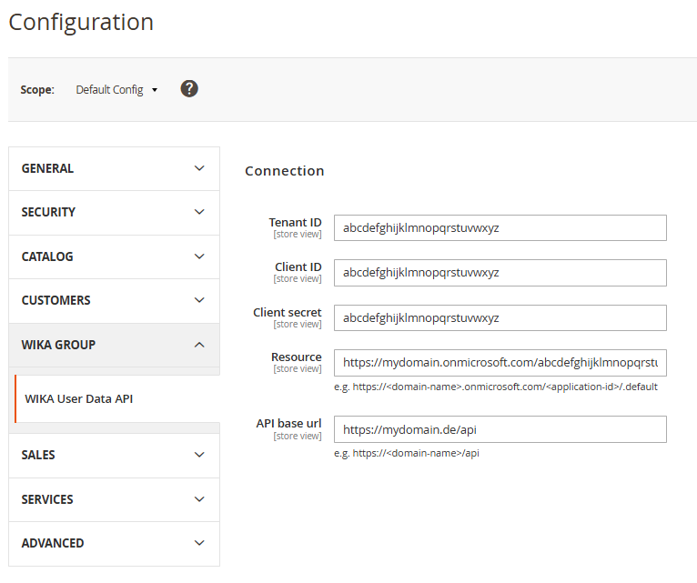 Stores -> Settings -> Configuration -> WIKA GROUP -> WIKA User Data API