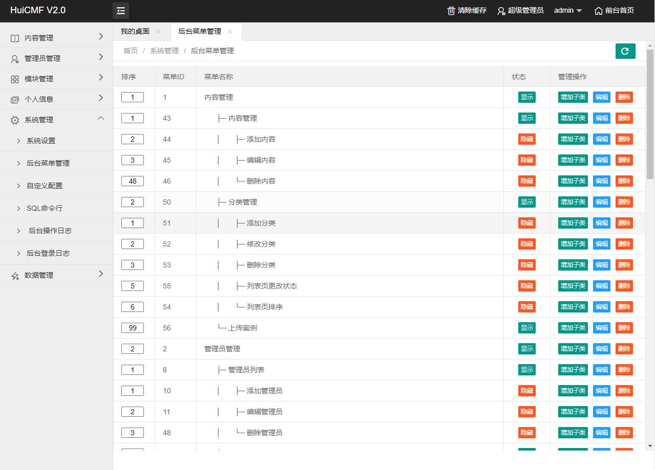 - 后台菜单管理