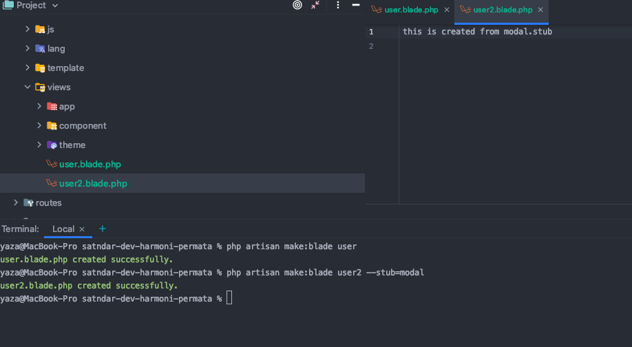You can make blade using artisan command