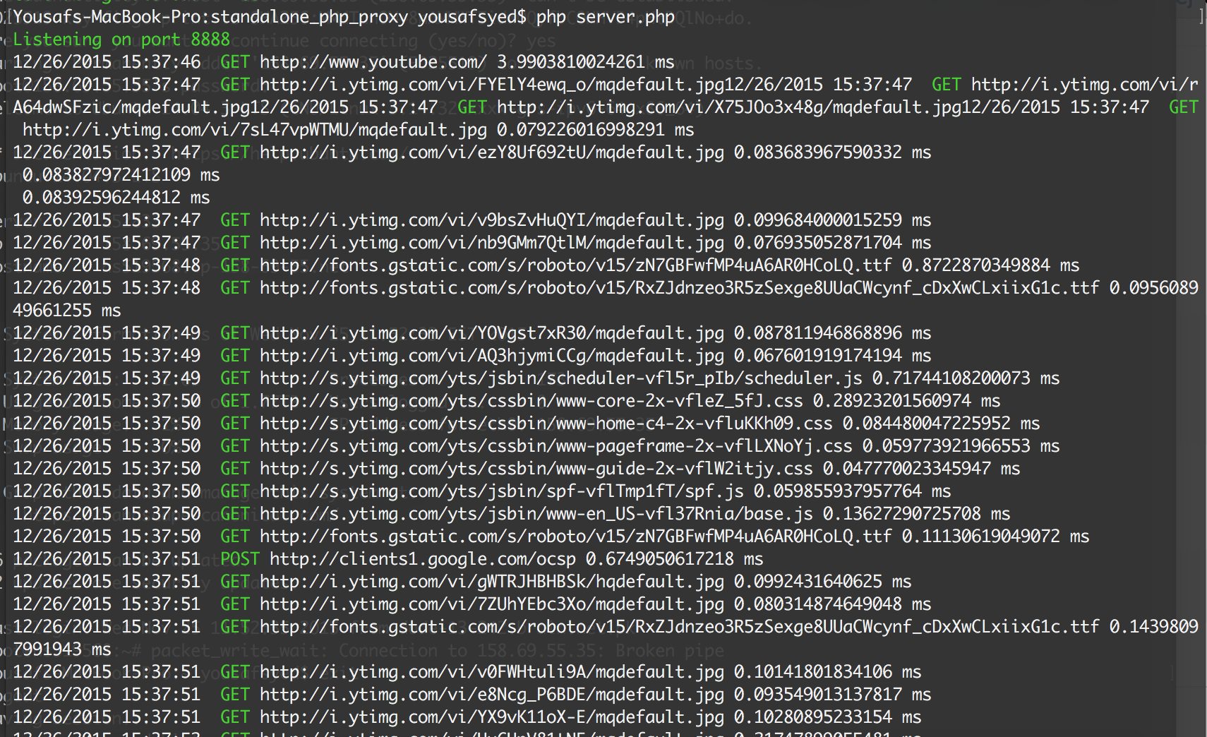 require "./vendor/autoload.php"; use YousafSyed\ProxyServer; $server = new ProxyServer(); // optional parameters for port and host like this new ProxyServer('8080','localhost') // finally run the server $server->run();