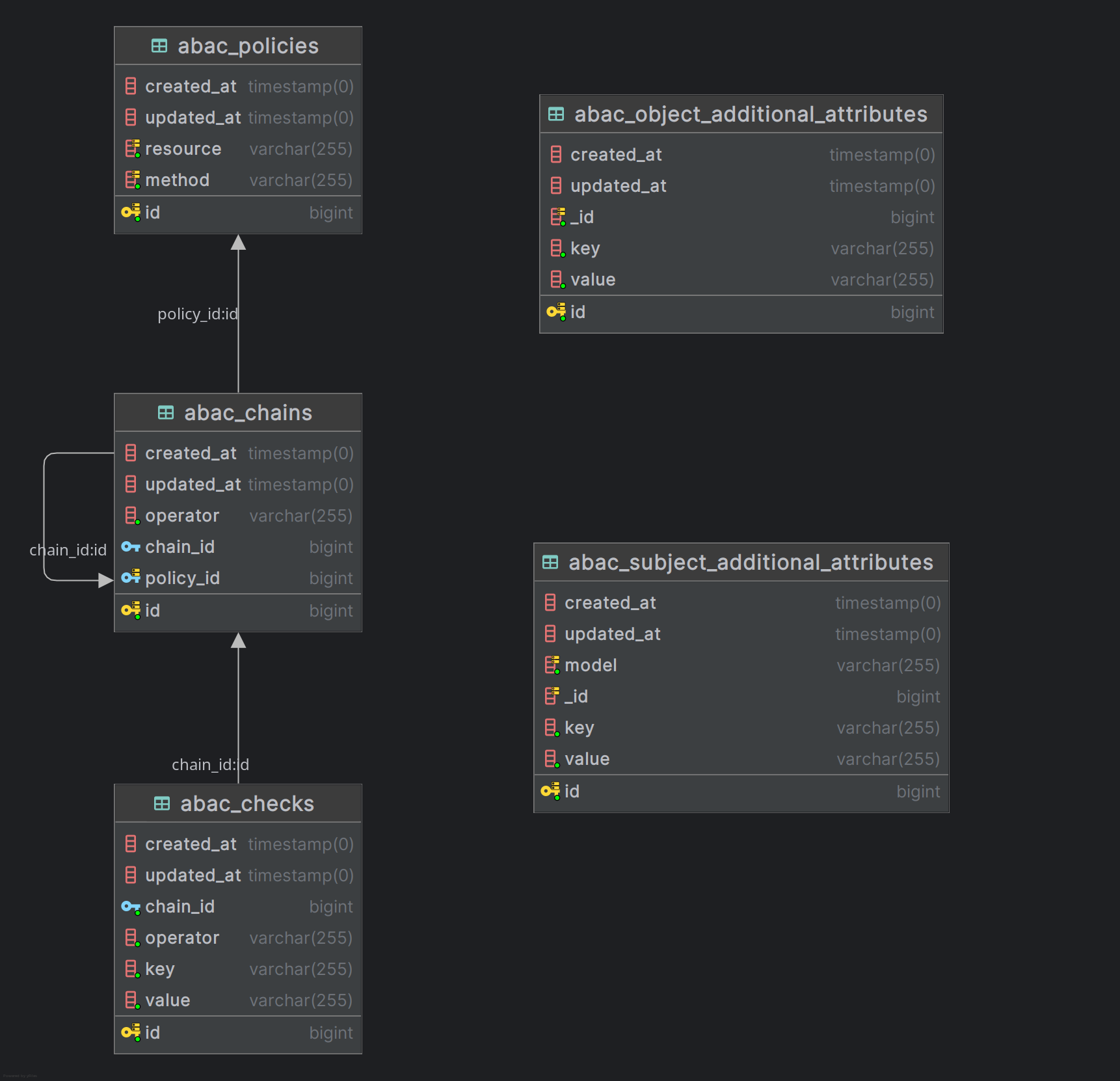 ABAC_SLOW_EVALUATION_THRESHOLD, default 100ms) will log a warning - Performance metrics can be viewed in your configured log channel (